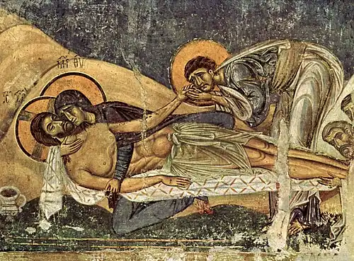 There were varying clashes between the two ideals — Hellenism and Christianity — which were often deemed ‘incompatible’. As Byzantine historian Dvornik notes, the Hellenistic theory of Divine Kingship was reconciled with the Byzantine concept of a single Universal Ruler who “imitated” and personified the Divine Ruler in Heaven.[22] A fusion of Hellenistic doctrines, occurred as to justify this incorporation of Hellenistic and often pagan-associated themes into the heavily Christian society. Such elements included the classical philosophers Plato, Philo and Greek Stoics. Lactanitus and Clement of Alexandria also served as key contributors to the theory, that was solidified and instituted by Byzantine Eusebius of Caesarea in a finalistic and concluding doctrine.[23] This was consistently characterised through the assimilation of neoclassical and Christian themes into Byzantine artwork.