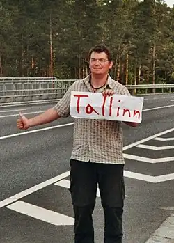 Hitchhiking in Poland has a long history and is still popular. It was legalised and formalised in 1957 so hitchhikers could buy booklets including coupons from travel agencies.[21] These coupons were given to drivers who took hitchhikers. By the end of each season drivers who collected the highest number of coupons could exchange them for prizes, and others took part in a lottery. This so-called "Akcja Autostop" was popular till the end of the 1970s, but the sale of the booklet was discontinued in 1995.[22]
