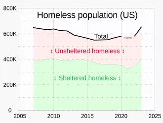 - ↑ "HUD Reports Drop in the Number of Chronically Homeless Persons: More resources and better reporting contribute to annual declines". U.S. Department of Housing and Urban Development. Archived from the original on 6 August 2008. , 2007 data