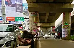 An increasing number of migrants looking for employment and better living standards are quickly joining India's homeless population.[7] Although non-governmental organisations are helping to relieve the homelessness crisis in India, these organisation are not enough to solve the entire problem.[8] Attempts at gentrifying India's problematic neighbourhoods is also bringing homelessness levels up.[31] Laws passed by the Municipal Corporation of Mumbai during the 1970s and the 1980s were held by the Indian Courts to be violations of people's right to life in addition to their right to a decent livelihood.[31] A landmark case in 1986, however, would result in the favour of the homeless masses of India.[31] The first decade of the 21st century would see 75,000 people kicked out of Sanjay Gandhi National Park with the government using a massive military force of helicopters and heavily armed police officers.[31]