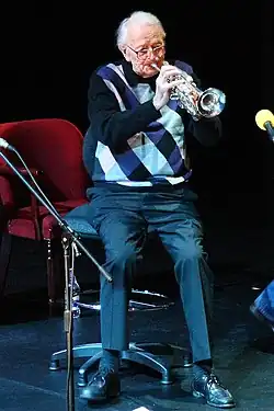 Jazz writer and historian Godbolt remembers that in 1951 it was used to refer to the fans of Old Etonian jazz trumpeter Humphrey Lyttelton who would turn up in droves to the 100 Club in Oxford Street, London and shout in loud, upper class voices between songs, "Hooray!, Hooray!". Lyttelton has commented on the term but credits Damon Runyon with coining it. He stated in an interview, "In jazz circles, aggressively "upper class" characters are known as Hoorays, an adaption, I believe, of Damon Runyon's "Hooray Henries".[9]