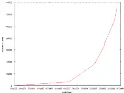 ![]() The number of users on Hospitality Club in the years 2000 to 2006. |