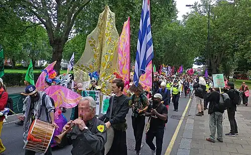 - ↑ Mehta, Amar (23 August 2021). "Extinction Rebellion: Activists begin two weeks of London protests 'targeting root cause of climate crisis'". Sky News. Archived from the original on 24 August 2021. Retrieved 26 August 2021.
