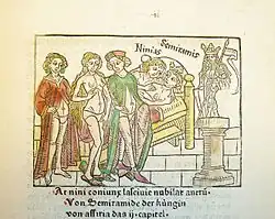 Incest is mentioned and condemned in Virgil's Aeneid Book VI:[40] hic thalamum invasit natae vetitosque hymenaeos – "This one invaded a daughter's room and a forbidden sex act".