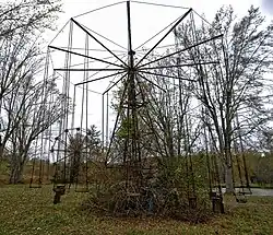 The Lake Shawnee Amusement Park was founded in 1926 in West Virginia, and was a popular source of entertainment for the local coal mining population. The first known European settlers on that plot of land were the Clay family in late eighteenth century.[12] In 1783, three of the Clay children were killed by a Native American tribe. The Clay family sought vengeance and killed several Native Americans in retaliation.[12] Accidental deaths at the amusement park during the 1950s, and its closure after failing a health inspection, are claimed by paranormal enthusiasts to be the result of a supernatural curse on the land.[12] During the 1990s, workers found Native American artifacts on the site, and archeologists subsequently unearthed a total of 13 Native American bodies. The park now holds guided tours of the allegedly haunted location.[13][14][15][16] The park was featured on several television shows such as Scariest Places on Earth (2002), Most Terrifying Places in America (2010), Most Terrifying Places (2019),[17] and Portals to Hell (2019).[18]