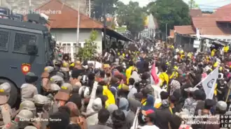 - ↑ "Demo Tolak Omnibus Law di Ternate Ricuh, Mahasiswa dan Aparat Saling Lempar Batu". SINDOnews.com (in Indonesian). 9 October 2020. Archived from the original on 28 December 2020. Retrieved 9 October 2020.