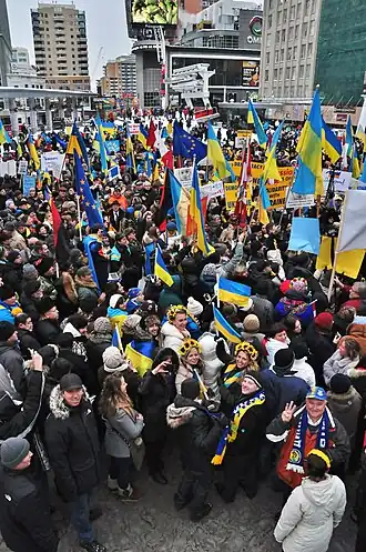 - ↑ Maryam Shah (24 November 2013). "Toronto protesters support Ukrainian EU deal". Toronto Sun. Retrieved 2 December 2013.