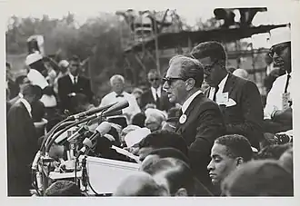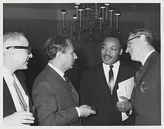 Rabbi Joachim Prinz, who served as the AJC's president after Goldstein (1958–1966), emphasized the shared commitment to justice among diverse communities — most notably in his speech at the historic March on Washington for Jobs and Freedom in 1963, delivered just before King's iconic "I Have a Dream" address.[49][50][18]
