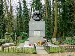 Born in Trier in the Kingdom of Prussia, Marx studied at the universities of Bonn, Berlin, and Jena, and received a doctorate in philosophy from the latter in 1841. A Young Hegelian, he was influenced by the philosophy of Georg Wilhelm Friedrich Hegel, and both critiqued and developed Hegel's ideas in works such as The German Ideology (written 1846) and the Grundrisse (written 1857–1858). While in Paris, Marx wrote his Economic and Philosophic Manuscripts of 1844 and met Engels, who became his closest friend and collaborator. After moving to Brussels in 1845, they were active in the Communist League, and in 1848 they wrote The Communist Manifesto, which expresses Marx's ideas and lays out a programme for revolution. Marx was expelled from Belgium and Germany, and in 1849 moved to London, where he wrote The Eighteenth Brumaire of Louis Bonaparte (1852) and Das Kapital. From 1864, Marx was involved in the International Workingmen's Association (First International), in which he fought the influence of anarchists led by Mikhail Bakunin. In his Critique of the Gotha Programme (1875), Marx wrote on revolution, the state and the transition to communism. He died stateless in 1883 and was buried in Highgate Cemetery.
