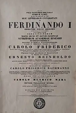 Inscription at the University of Jena commemorating the PhD he was awarded there in 1841