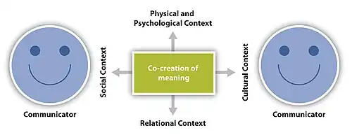 A further criticism focuses on the fact that Lasswell's model does not address various influences of the context on communication.[10] Context is a wide term and refers to the circumstances of the transmission. There are various forms of context, like the physical surroundings, emotional aspects such as the mood of the participants as well as social and cultural factors. These factors are crucial in many cases for understanding why a conversation evolves one way rather than another.[27][17][28]