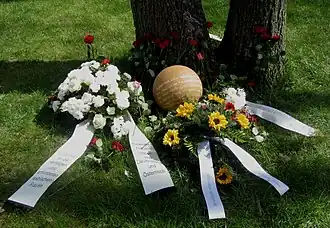 In 2008, there was a controversy over the Memorial to Homosexuals Persecuted Under Nazism in Tiergarten, Berlin about the initial non-inclusion of gay women in the memorial. Critics argued that, while gay women did not face systematic persecution to the same extent as gay men, it was appropriate to memorialize those women who had been sent to concentration camps. A plan to replace the initial video with one that included women faced a backlash from opposing historians, activists, and memorial directors who argued that it would be "falsification" to include gay women.[8] Despite efforts by some lesbian activists to commemorate female homosexuals imprisoned and murdered at Ravensbrück, as of 2021 there has not been agreement on the establishment of a gay women's memorial at the camp.[9] Huneke argues that even though homosexual women were not systematically persecuted, it may be appropriate to erect memorials because gay women in Nazi Germany faced violence and discrimination.[2]