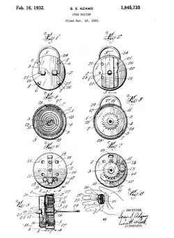 Patent drawing for a joy buzzer, Soren Adams' 1932 U.S. patent