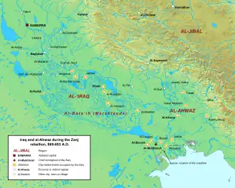 - ↑ Waines, David, ed. (1992). The History of al-Ṭabarī, Volume XXXVI: The Revolt of the Zanj, A.D. 869–879/A.H. 255–265. Albany, New York: State University of New York Press. ISBN 0-7914-0764-0.