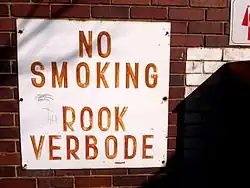 - 'No smoking' signs must be displayed prominently where there is a ban.[30]