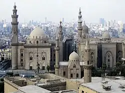 Mosque-Madrassa of Sultan Hassan (left) along with the later Al-Rifa'i Mosque (right) and two Ottoman mosques (foreground) in Cairo