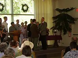 Group marriage (also known as multi-lateral marriage) is a form of polyamory in which more than two persons form a family unit, with all the members of the group marriage being considered to be married to all the other members of the group marriage, and all members of the marriage share parental responsibility for any children arising from the marriage.[34] No country legally condones group marriages, neither under the law nor as a common law marriage, but historically it has been practiced by some cultures of Polynesia, Asia, Papua New Guinea and the Americas – as well as in some intentional communities and alternative subcultures such as the Oneida Perfectionists in up-state New York. Of the 250 societies reported by the American anthropologist George Murdock in 1949, only the Kaingang of Brazil had any group marriages at all.[35]