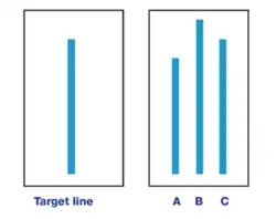 Participants had to state which line (A, B, or C) was most similar to the target line out loud.