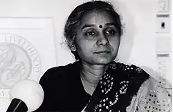 Narmada Bachao Andolan was also joined by several NGOs with local people, professionals, and activists as the founders with a non-violent approach.[18] It was led by Medha Patkar. Nationally, they wanted an alternative structure of development and internationally, they wanted to build pressure on the World Bank to take accountability.[19]