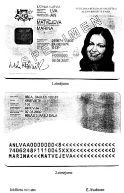 - ↑ Law On the Status of those Former USSR Citizens who do not have the Citizenship of Latvia or that of any Other State Archived January 17, 2020, at the Wayback Machine, as of 2007 (no amendments made later, as at 2016 - cf. likumi.lv Archived July 21, 2006, at the Wayback Machine (in Latvian))
