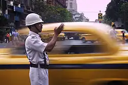 Gestures may be made with the hands, arms or body, and also include movements of the head, face and eyes, such as winking, nodding, or rolling one's eyes. Although the study of gesture is still in its infancy, some broad categories of gestures have been identified by researchers. The most familiar are the so-called emblems or quotable gestures. These are conventional, culture-specific gestures that can be used as replacement for words, such as the hand wave used in western cultures for "hello" and "goodbye". A single emblematic gesture can have a very different significance in different cultural contexts, ranging from complimentary to highly offensive.[44] For a list of emblematic gestures, see List of gestures. There are some universal gestures like the shoulder shrug.[10]