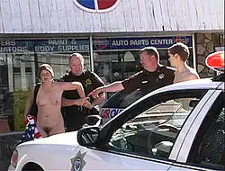 Nudity is sometimes used as a tactic during a protest to attract media and public attention to a cause, and sometimes promotion of public nudity is itself the objective of a nude protest.[1] The practice was first documented in the 1650s with Quakers "naked as a sign" practice.[2] Later the tactic was used by svobodniki in Canada in 1903, and photographs of their nude protests have been published. The tactic has been used by other groups later in the century, especially after the 1960s. Like public nudity in general, the cultural and legal acceptance of nudity as a tactic in protest also varies around the world. Some opponents of any public nudity claim that it is indecent, especially when it can be viewed by children; while others argue that it is a legitimate form of expression covered by the right to free speech.
