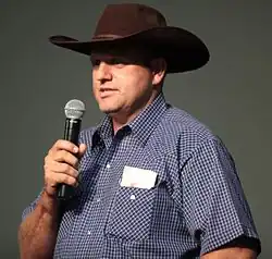 Also in a leadership position amongst the militants was the group's occasional spokesman LaVoy Finicum, another Mormon, who owned a ranch at Cane Beds, in the Arizona Strip, near the community of Colorado City, Arizona.[48] He had recently authored a self-published post-apocalyptic novel.[49][50] Ammon's brother, Ryan Bundy, was also amongst the militants present, and was later arrested for his role in the occupation.