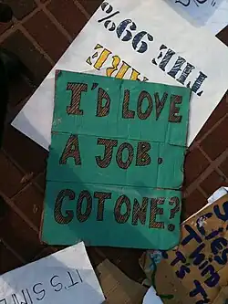 - ↑ "Protesters Send Gov. O'Malley Job Message". Baltimore: WBAL-TV. October 10, 2011. Retrieved December 1, 2011.