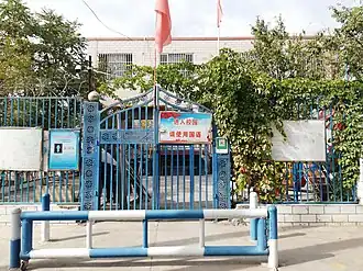 In addition to mass detention, government policies have included forced labor and factory work,[6][7] suppression of Uyghur religious practices,[8] political indoctrination,[9] forced sterilization,[10] forced contraception,[11][12] and forced abortion.[13][14] An estimated 16,000 mosques have been razed or damaged,[3] and hundreds of thousands of children have been forcibly separated from their parents and sent to boarding schools.[15][16] Chinese government statistics reported that from 2015 to 2018, birth rates in the mostly Uyghur regions of Hotan and Kashgar fell by more than 60%.[10] In the same period, the birth rate of the whole country decreased by 9.7%.[17] Chinese authorities according to CNN acknowledged that birth rates dropped by almost a third in 2018 in Xinjiang, but denied reports of forced sterilization.[18] Birth rates in Xinjiang fell a further 24% in 2019, compared to a nationwide decrease of 4.2%.[10]