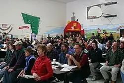 Others question their ability to represent the population. Jane Mansbridge and Donald L. Robinson have argued that town meetings in Vermont and Massachusetts feature extremely low turnout in part because they last for a full working day, thus overrepresentating seniors and non-working residents in the meetings.[30] Mansbridge also notes differences in participation on the basis of education and class when conflicts arise, writing that "the face-to-face assembly lets those who have no trouble speaking defend their interests; it does not give the average citizen comparable protection."[30] Feminist critics have also identified mixed results in town meetings. While women's rates of attendance at town meetings was nearly equal relative to men's, their participation in discussion relative to men declined as the size of the town increased.[9][31]