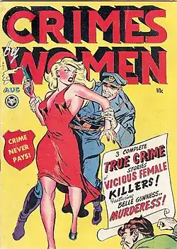 During World War II, women assumed jobs formerly occupied by men, becoming truck drivers, stevedores, and welders. The same was reflected in comic books, as heroes such as Hawkman turned to their wives or girlfriends for help, creating a new category of heroines: the partners.[5] Many women, after World War II, refused to give up their newfound freedom, creating a massive crisis in formerly assumed definitions of masculinity and femininity.[19][20][18] The femme fatale (prevalent in The Spirit comic book) exemplified this crisis: a strong, sexually aggressive woman who refused to stay in her traditional "proper" place.[21]