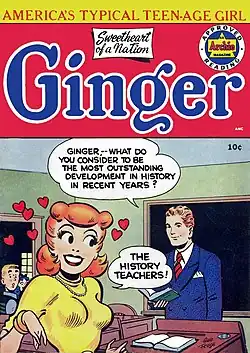 In the Golden Age of Comic Books (a time when the medium evolved from comic strips), women who were not superheroes were primarily portrayed in secondary roles. Some examples include: being classified as career girls, romance-story heroines, or lively teenagers.[1] Career-oriented girls included such characters as Nellie the Nurse, Tessie the Typist, and Millie the Model, who all appeared in comic books working jobs that non-wartime women of the era typically worked.[1] Romance heroines were popular in the romance genre, pioneered by Joe Simon and Jack Kirby. Typically, the heroine was either a "good girl" or "bad girl", with both attributes not really affecting male characters' decisions. In the Archie Comics, the titular character can never definitively choose between his two love interests Betty and Veronica. These characters typify the dichotomy between the good Girl-Next-Door-type versus the dangerous allure of her foil, the "Bad Girl". The duo got a comic of their own in 1950. Betty and Veronica quickly became popular, featuring the two lead characters, who continually obsessed about boys, and fought over who would get to date Archie.[2]