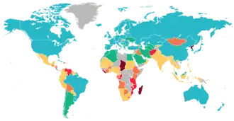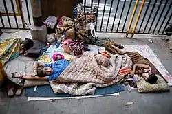 Statistically, as of 2019, most of the world's population live in poverty: in PPP dollars, 85% of people live on less than $30 per day, two-thirds live on less than $10 per day, and 10% live on less than $1.90 per day.[3] According to the World Bank Group in 2020, more than 40% of the poor live in conflict-affected countries.[4] Even when countries experience economic development, the poorest citizens of middle-income countries frequently do not gain an adequate share of their countries' increased wealth to leave poverty.[5] Governments and non-governmental organizations have experimented with a number of different policies and programs for poverty alleviation, such as electrification in rural areas or housing first policies in urban areas. The international policy frameworks for poverty alleviation, established by the United Nations in 2015, are summarized in Sustainable Development Goal 1: "No Poverty".