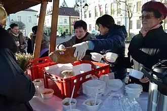 Under the communist regime state labour policy, income equalizing policies and subsidies to energy, food and housing helped to relieve poverty and made it less visible.[11] Rural workers' incomes were consistently lower than that of their urban counterparts, and poverty affected larger families living in the countryside with high numbers of children; but it also touched town dwellers: unskilled workers, pensioners, single and disabled people, single-parent families, families tied to alcoholism and crime, and young intelligentsia couples just starting independent lives. Family dysfunctions such as serious illness, elderly loneliness, abuse and alcoholism were correlated with poverty, as well as dramatic incidents in people's lives. Those living in poverty tended to have substandard housing, an inability to seek help from institutions, low education levels; they sometimes turned to crime and excessive drinking.[12]