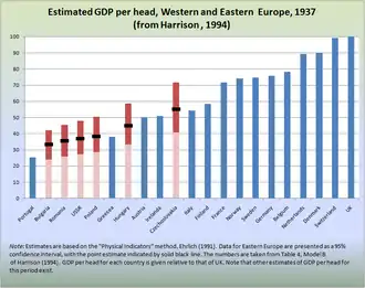 - 1 2 Harrison, Mark (1994). "GDPs of the USSR and Eastern Europe: Towards an Interwar Comparison" (PDF). Europe-Asia Studies. 46 (2): 243–259. CiteSeerX 10.1.1.587.4823. doi:10.1080/09668139408412160.
