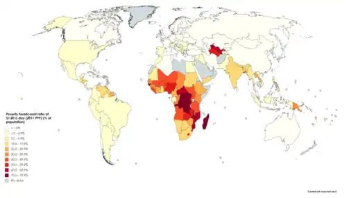 - ↑ "Poverty headcount ratio at $1.90 a day (2011 PPP) (% of population) | Data". data.worldbank.org. Retrieved 23 July 2020.