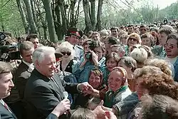 In the months before the dissolution of the Soviet Union in December 1991, soon-to-be president Boris Yeltsin began assembling a team of economic reformers led by Yegor Gaidar, then a young reformist economist, and including Anatoly Chubais. The reform team initially considered Swedish social democracy as a model for Russia, but Gaidar opted instead to study Hungary as a template and was influenced by Poland's use of shock therapy. Both Gaidar and Chubais were convinced that despite Russia's uniquely non-capitalist economic history, a market economy could successfully take hold in the country.[12] Following the August 1991 coup d'état attempt, the economic situation in the country dramatically worsened and an acute food shortage emerged. In October, Yeltsin delivered a speech in which he declared that price controls would be lifted on January 1, 1992, over Gaidar's recommendation that no specific date for the freeing of prices be given.[13]