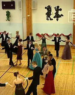 For the ball, the second-year students learn 10–15 formal dances, mostly old ballroom dances such as the mazurka or a polonaise. Lately, some schools have begun to allow students to perform their own choreographies with their chosen music, after or in between the old ballroom dances.