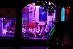 The 1997 criminal code codified provisions in the 1991 Decision, establishing a system of controls over social place, specifically places of leisure and entertainment.[124] The ultimate goal is to stop managers and workers within the predominantly male-run and male-patronised hospitality and service industry from profiting from and/or encouraging the prostitution of others. Government intervention in commercial recreation has found concrete expression in the form of the 1999 "Regulations concerning the management of public places of entertainment". The provisions proscribe a range of commercial practices that characterise the activities of female "hostesses".[125] These laws have been further reinforced via the introduction of localised licensing measures that bear directly on the interior spatial organisation of recreational venues.