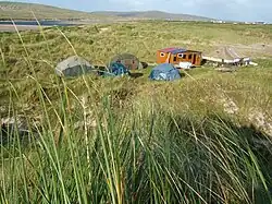 A protest camp or protest encampment (or just encampment) is a physical camp that is set up by activists, to either provide a base for protest, or to delay, obstruct or prevent the focus of their protest by physically blocking it with the camp. A protest camp may also have a symbolic or reproductive component where 'protest campers' try and recreate their desired worlds through the enactment of protest camp infrastructures (such as communal kitchens, child care, environmentally friendly composting toilet or use of grey water systems) or through the modes of organising and governance (e.g. direct democracy).