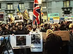 - ↑ Barradale, Greg (24 February 2022). "Hundreds protest outside Downing Street to demand tougher sanctions on Russia after invasion of Ukraine". The Big Issue. Archived from the original on 24 February 2022. Retrieved 24 February 2022.