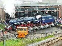 Preserved steam locomotive ČSD 498.104 at a festival in Dresden railway museum