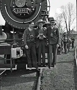 Railfans on a 1939 camera excursion train in the U.S. state of Ohio