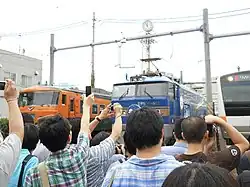 Railfans taking train photos at the Japan Railways Group (JR) Tokyo train center