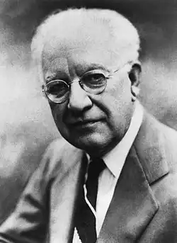 Robert Ezra Park (February 14, 1864 – February 7, 1944) was an American urban sociologist who is considered to be one of the most influential figures in early U.S. sociology.[1] Park was a pioneer in the field of sociology, changing it from a passive philosophical discipline to an active discipline rooted in the study of human behavior. He made significant contributions to the study of urban communities, race relations and the development of empirically grounded research methods, most notably participant observation in the field of criminology.[2] From 1905 to 1914, Park worked with Booker T. Washington at the Tuskegee Institute. After Tuskegee, he taught at the University of Chicago from 1914 to 1933, where he played a leading role in the development of the Chicago School of sociology.