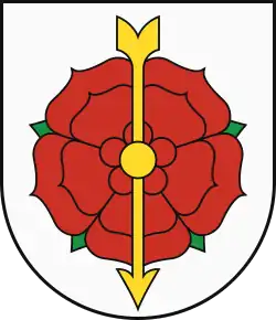 - Rose (heraldry) – often used both as a charge on a coat of arms and by itself as an heraldic badge