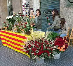 Catalans in the north eastern of Spain have traditionally celebrated Saint George's Day (April 23) – which commemorates Saint George (Sant Jordi), the patron saint of the Catalonia region; as the dia dels enamorats ("lovers' day"), on which lovers exchange blood-red roses.[25]