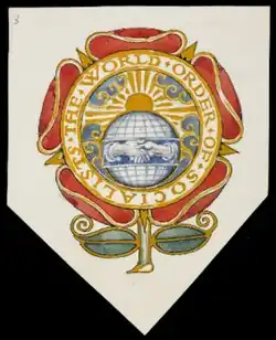The Tamiment Library and Robert F. Wagner Archives at New York University states that the rose "has always been an important symbol with anti-authoritarian associations."[54] The rose is used to show the end after the means, meaning "lay a rose on the grave". The rose symbol became popular as a political logo among socialist and social democratic political parties in post-World War II Western Europe.[54] The fist and rose, in which the rose is held by a clenched fist, is used by the Socialist International "and many of its member parties".[55] The French Socialist Party (PS) was the first party to adopt it in 1971, using imagery popular with left-wing movements of the era.[56] Centre-leaning and moderate parties tend to use a red rose alone, doing away with the revolutionary heritage of the raised fist.[57] The British Labour Party has used a red rose as its symbol since the late 1980s; the rose replaced the party's previous symbol, the red flag.[58][59]
