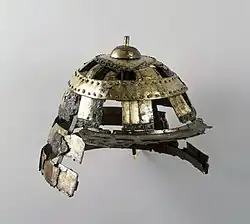In the late Kamakura period, even the most senior samurai began to wear dō-maru, as the heavy and elegant ō-yoroi were no longer respected. Until then, the body was the only part of the dō-maru that was protected, but for higher-ranking samurai, the dō-maru also came with a kabuto (helmet) and shoulder guards.[27] For lower-ranked samurai, the haraate was introduced, the simplest style of armor that protected only the front of the torso and the sides of the abdomen. In the late Kamakura period, a new type of armor called haramaki appeared, in which the two ends of the haraate were extended to the back to provide greater protection.[31]