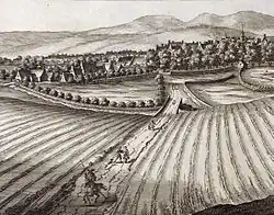 Before the 17th century, with difficult terrain, poor roads and methods of transport there was little trade between different areas of the country and most settlements depended on what was produced locally, often with little in reserve in bad years. Most farming was based on the lowland fermtoun or highland baile, settlements of a handful of families that jointly farmed an area notionally suitable for two or three plough teams, allocated in run rigs, of "runs" (furrows) and "rigs" (ridges), to tenant farmers. Most ploughing was done with a heavy wooden plough with an iron coulter, pulled by oxen, which were more effective in the heavy Scottish soil, and cheaper to feed than horses.[4] Those with property rights included husbandmen, lesser landholders and free tenants.[5] Below them were the cottars, who often shared rights to common pasture, occupied small portions of land and participated in joint farming as hired labour. Farms also might have grassmen, who had rights only to grazing.[5] Three acts of parliament passed in 1695 allowed the consolidation of runrigs and the division of common land.[6]